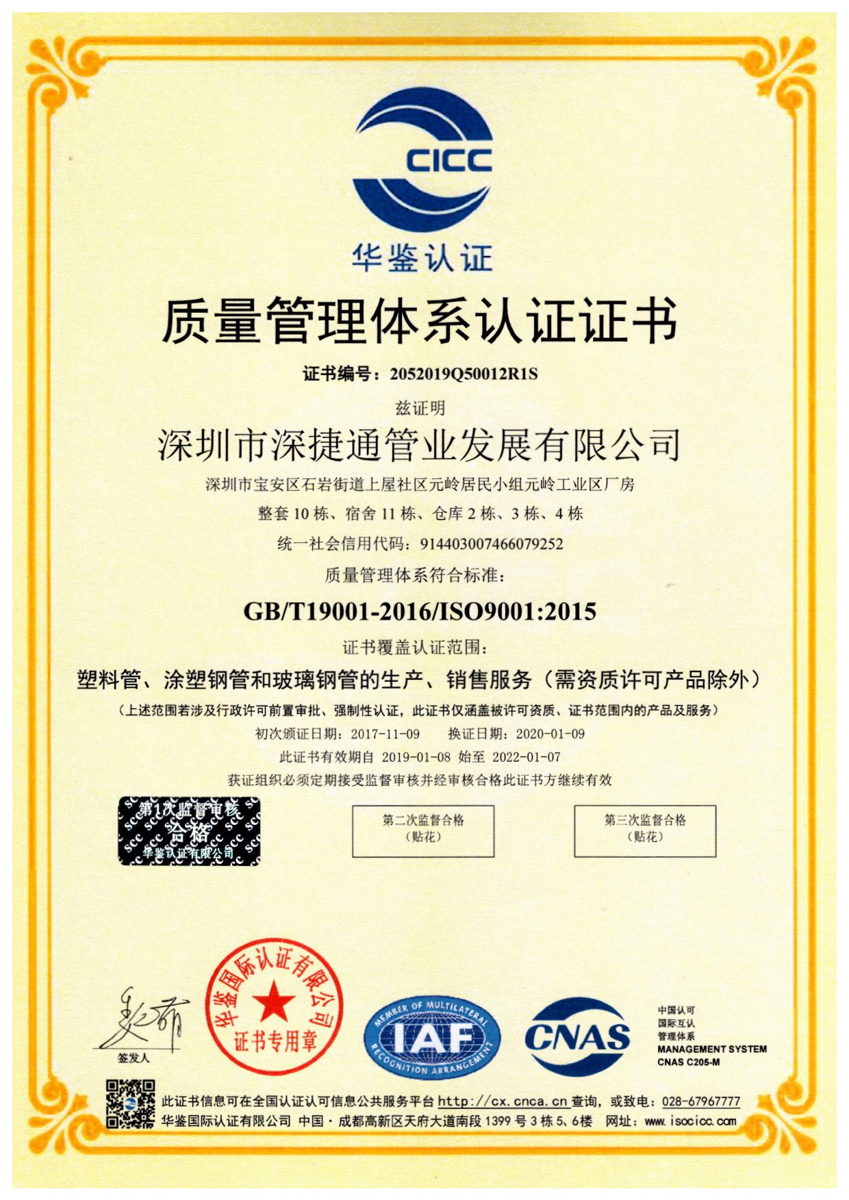 珠海供电局2018年7月向深圳市深捷通管业发展有限公司颁发锦旗