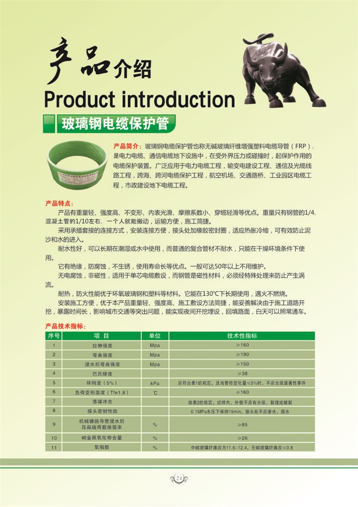 玻璃钢电缆保护管乐彩汇也称无碱纤维强强塑料电导管(FRP),是电力电缆、通信电缆地下设施中,在受外界压力或碰撞时,起保护作用的电缆保护装置。广泛应用于电力电缆工程,输变电建设工程、通信及光缆线路工程,跨海、跨河电缆保护工程,航空机场、交通路桥、工业园区电缆工程,市政建设地下电缆工程。