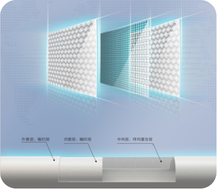 BWFRP纤维编绕拉挤管是由内编织层、间层、外编织层构通拉挤工艺型产品,通过不同编织角度(纵向编织和环向编织)来完成构造的复合型材料。因为它的生产加工是高温热化工艺,所以不像塑料管类产品有废料的情况。