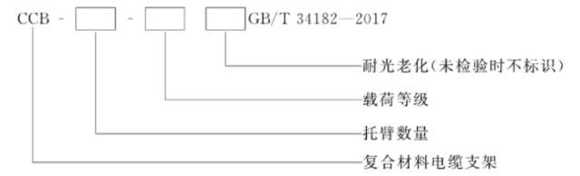 示例:托臂数最为多臂式、载荷等级为3级、耐光老化型.的电缆支架标记为:CCB-M-3LGB/T34182-2017.